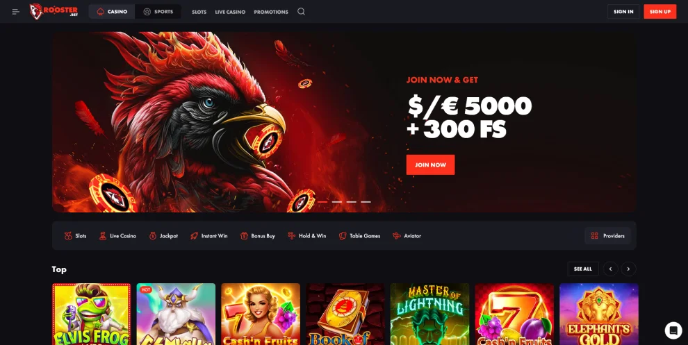- Second – 50% up to $1000, promo code: ROOSTER2, plus 50 free spins.
