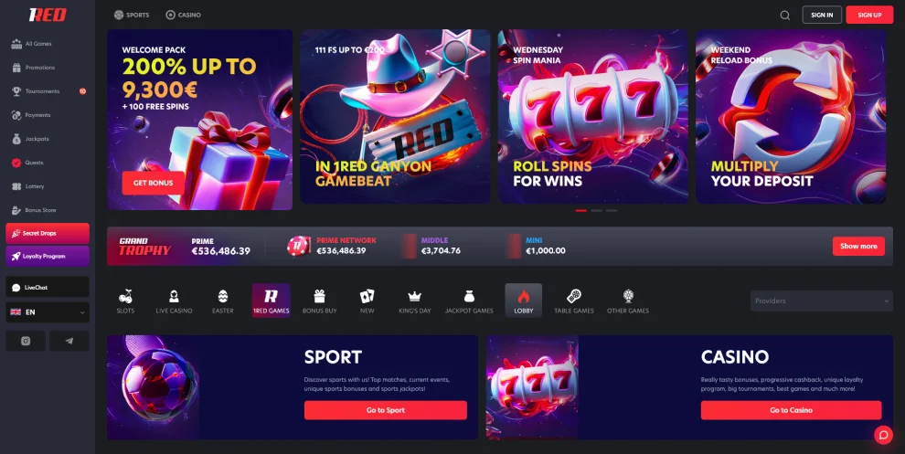 Et maintenant — les choses intéressantes ! Au Casino 1Red, tu trouveras :
