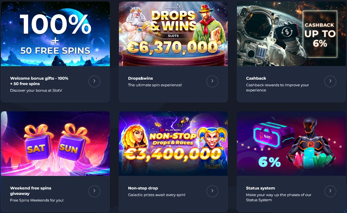 Ești nou la SlotV Casino? Te întâmpină pachetul clasic: bonus de bun venit, cashback săptămânal, chiar și premii fără depunere. Hai pe rând.